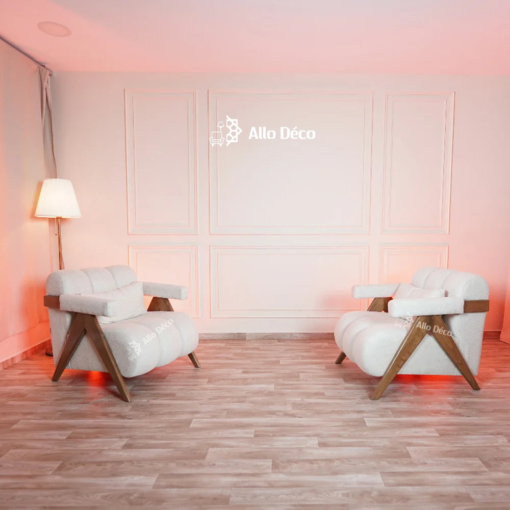 Revêtu d’un tissu bouclé doux et résistant, il offre une assise généreuse et ultra-confortable grâce à son rembourrage haut de gamme.