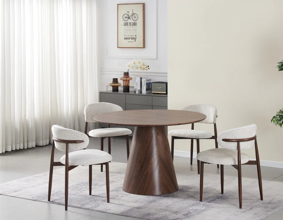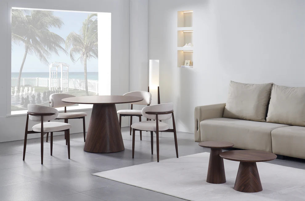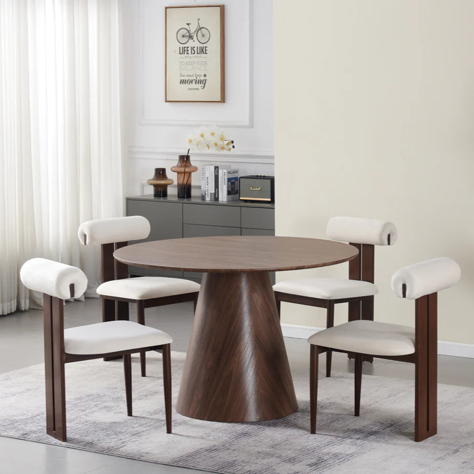 Cette table à manger au design moderne et minimaliste est pensée pour optimiser l’espace de votre intérieur. Son socle pyramidal sculptural, à la fois stable et élégant, permet aux chaises de se glisser facilement sous le plateau, libérant ainsi de la place et facilitant la circulation autour de la table.
