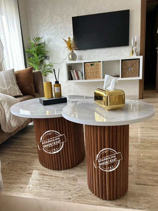 Tables basses en métal et bois effet marbre – Élégance et fonctionnalité Tables gigognes modernes